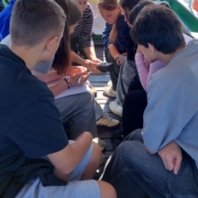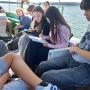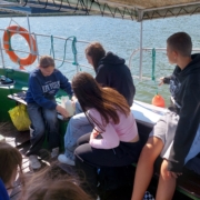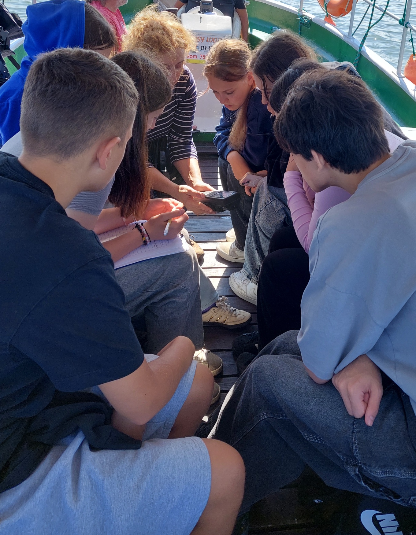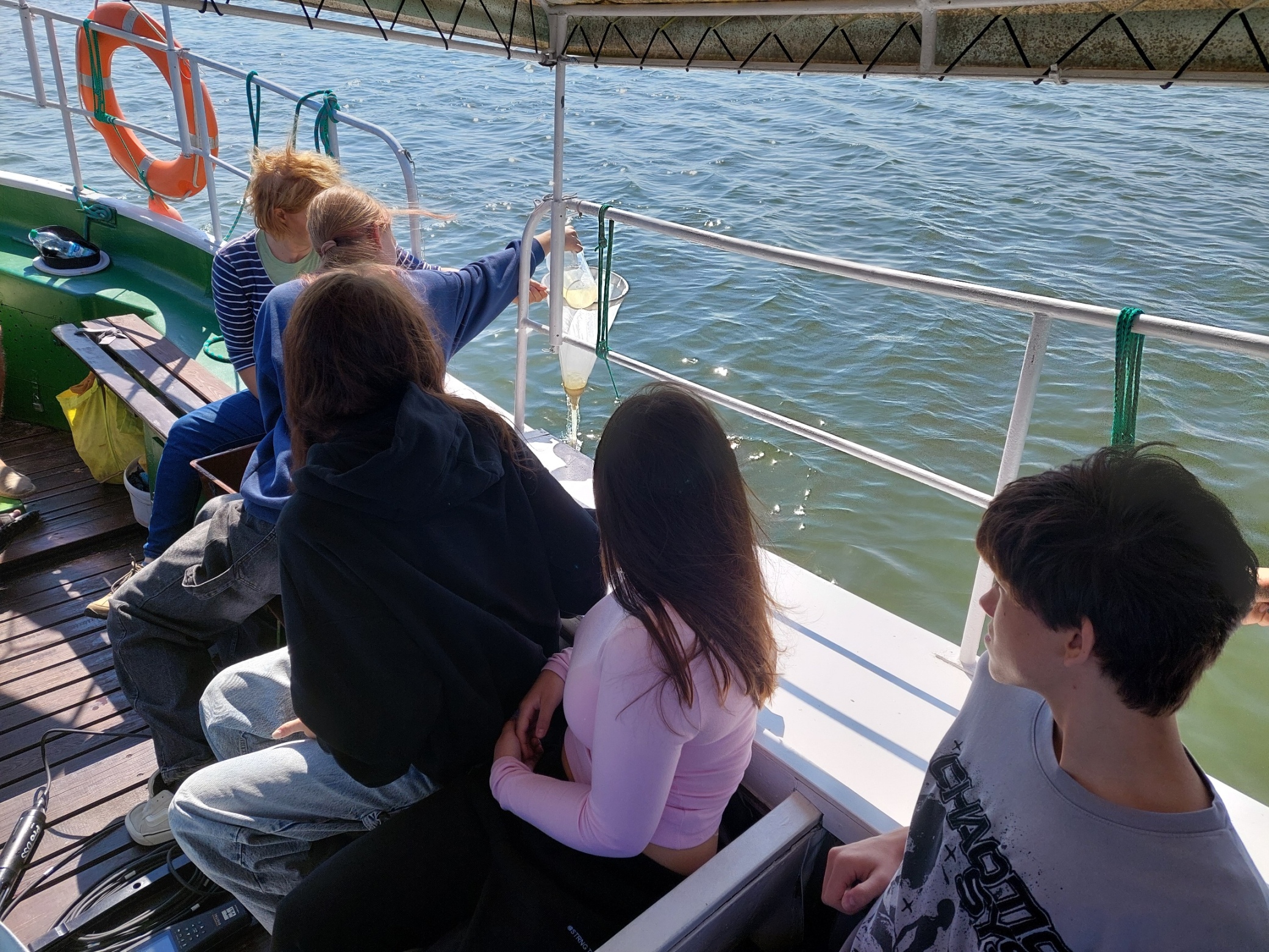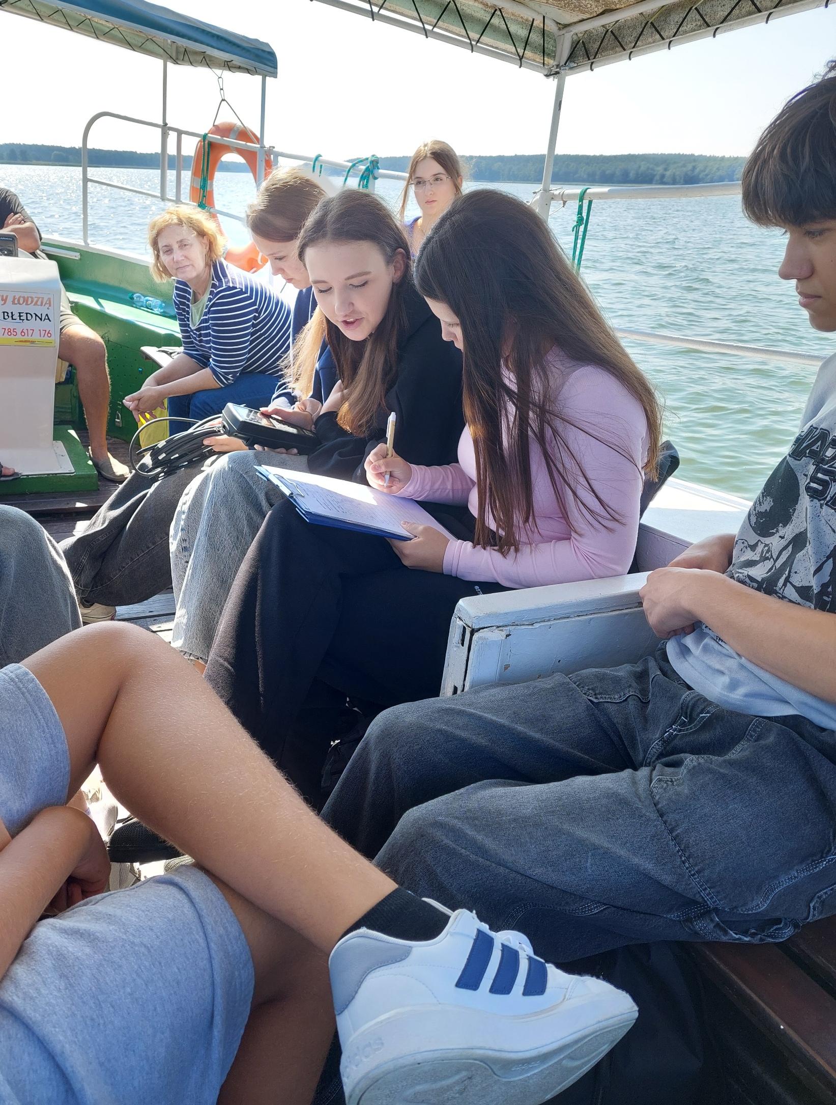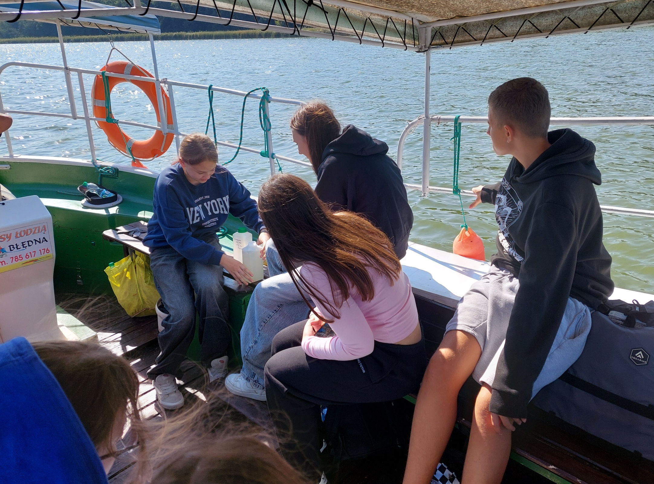 Wzorem ubiegłych lat grupa uczniów klasy przyrodniczo-medycznej pod opieką Pani prof. Beaty Messyasz z Zakładu Hydrobiologii UAM w Poznaniu badała jakość wody naszego jeziora Błędno. Anastazja, Ewa, Paulina, Anastasiia, druga Ewa, Michał i Cezary z I c, przy pięknej, słonecznej pogodzie, przeprowadzili pomiary i pobrali próbki do dalszej analizy. Jakość wody uległa pewnej poprawie w porównaniu z rokiem ubiegłym. Nadal występują zakwity sinic, ale przejrzystość wody wyniosła 50 cm, czyli o 10 cm więcej niż rok wcześniej.