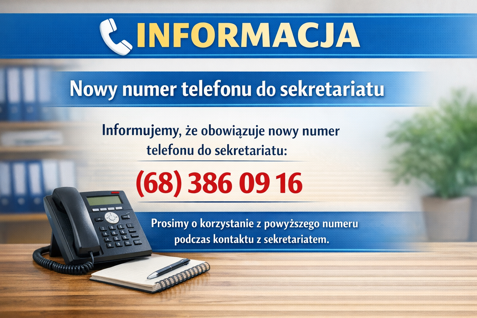 Nowy numer telefonu do sekretariatu w budynku A