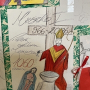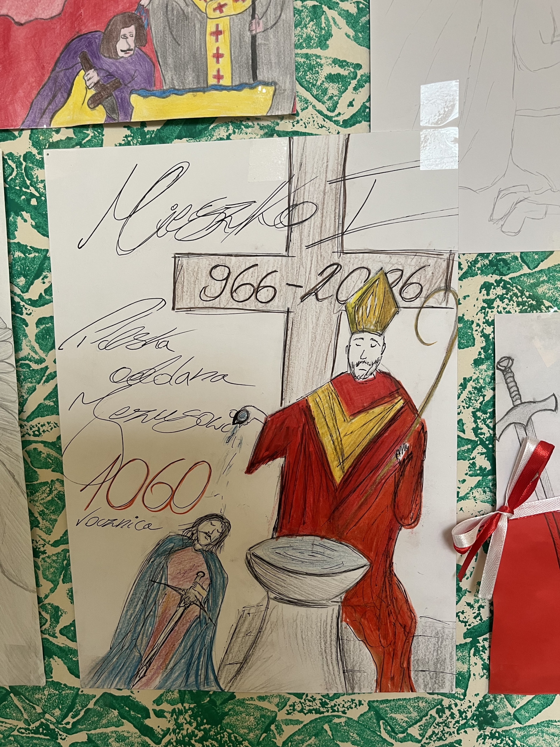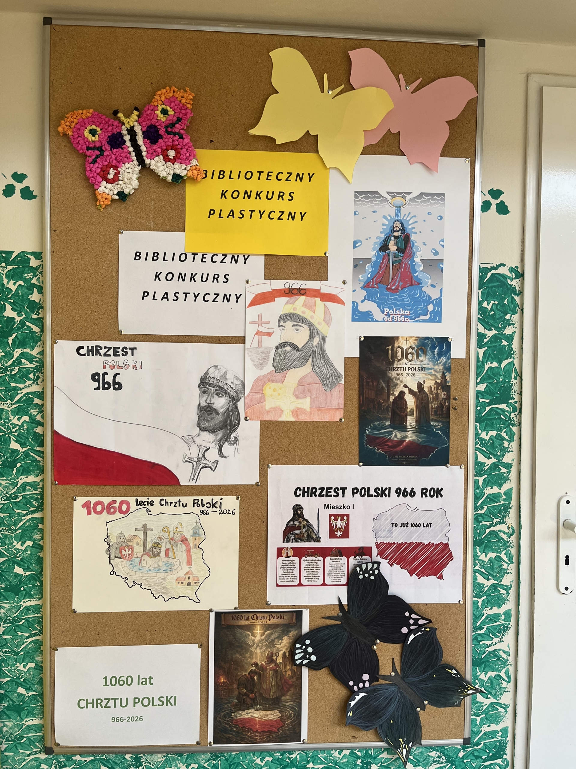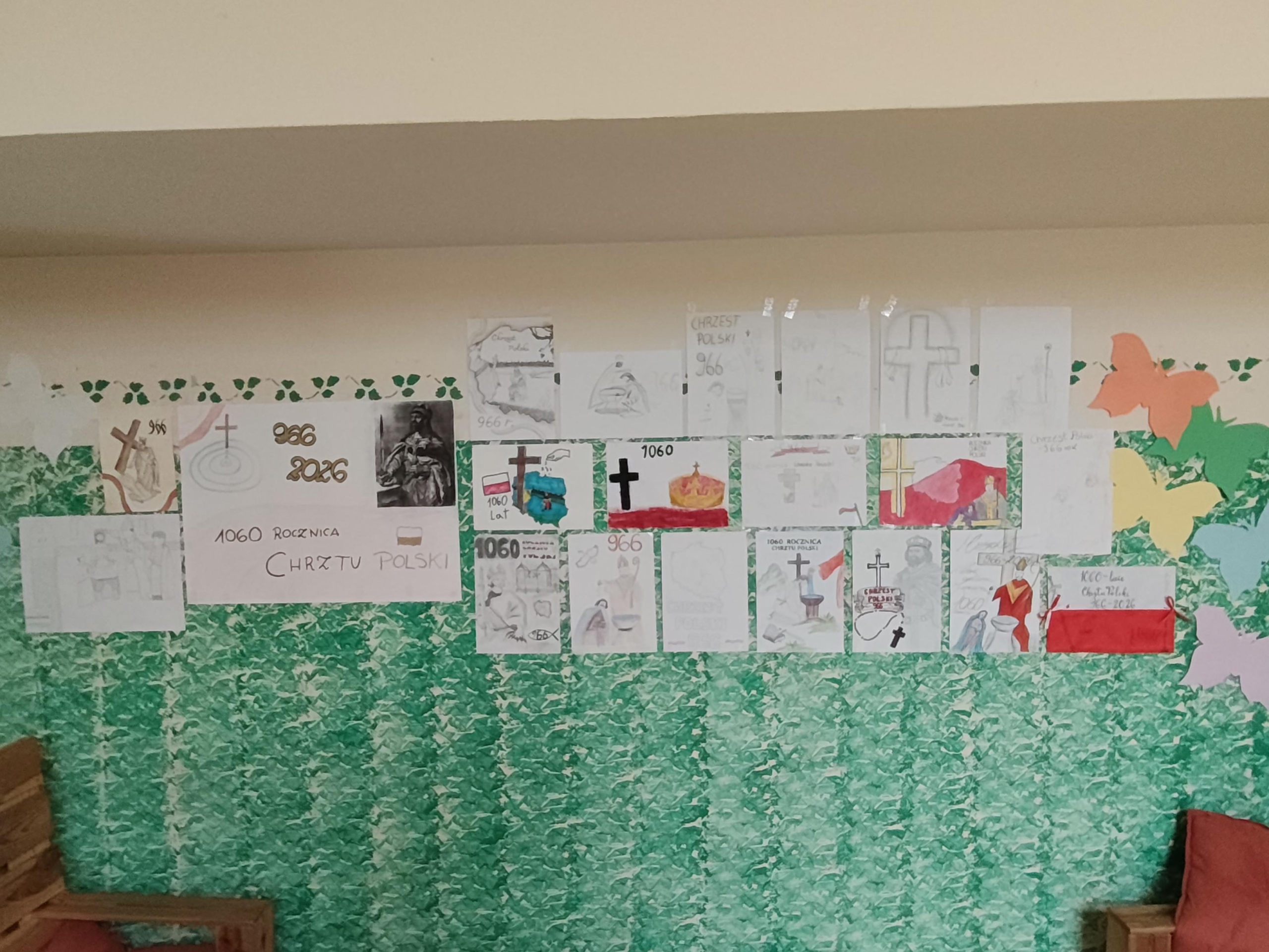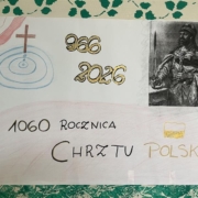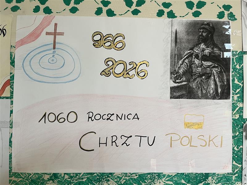 W naszej szkole uroczyście upamiętniono 1060. Rocznicę Chrztu Polski – wydarzenia o ogromnym znaczeniu dla historii i tożsamości naszego kraju. Z tej okazji zorganizowano szereg działań, które zaangażowały uczniów i nauczycieli. Jednym z głównych elementów obchodów był konkurs plastyczny, w którym uczniowie przedstawiali własne interpretacje chrztu Polski oraz jego znaczenie dla państwa i narodu. Powstałe prace odznaczały się dużą kreatywnością i różnorodnością form. Równolegle odbył się konkurs literacki, zachęcający młodzież do refleksji nad historią i jej wpływem na współczesność. Ważnym elementem obchodów była także prezentacja multimedialna, która przybliżyła społeczności szkolnej okoliczności chrztu Polski, jego przebieg oraz konsekwencje dla rozwoju państwa. O wyjątkowa atmosferę zadbała biblioteka szkolna, która przygotowała tematyczny wystrój szkoły. Na korytarzach pojawiły się gazetki, plakaty oraz materiały edukacyjne związane z tym wydarzeniem.