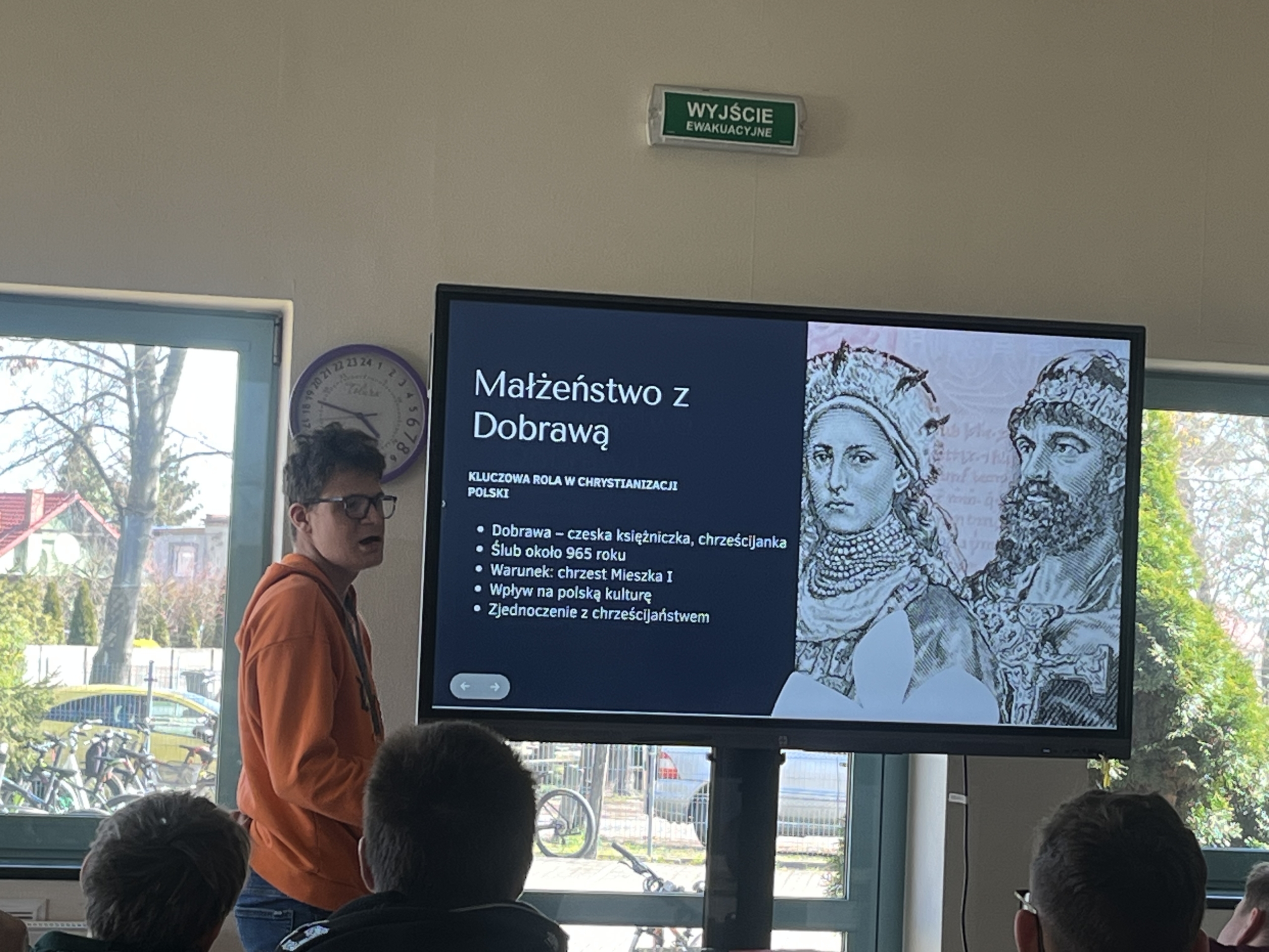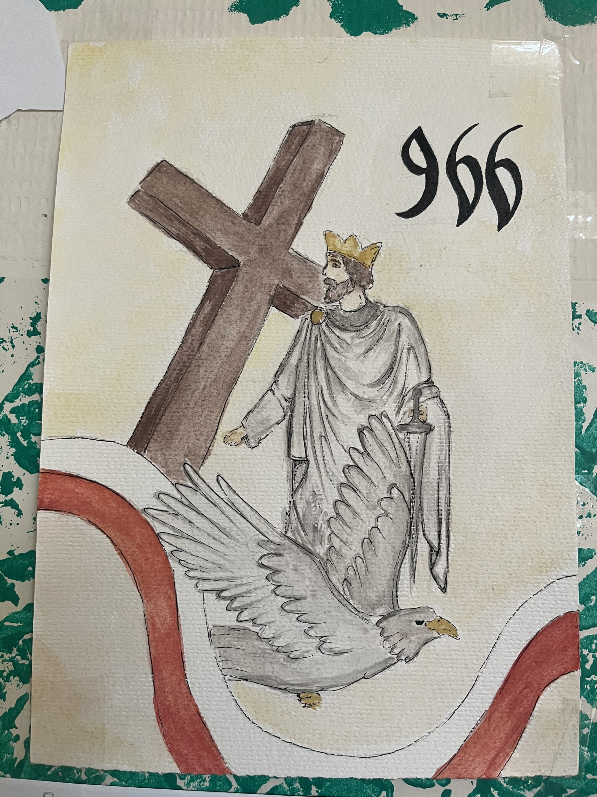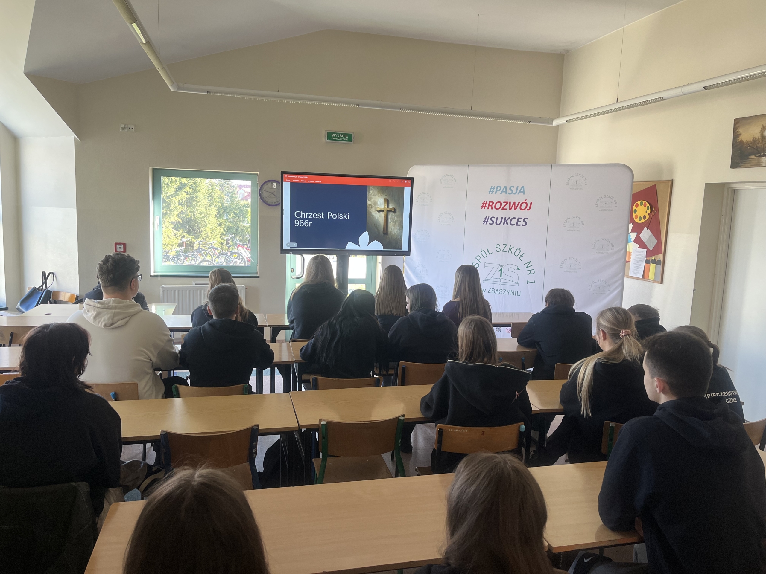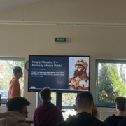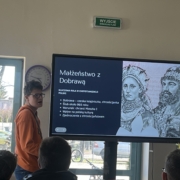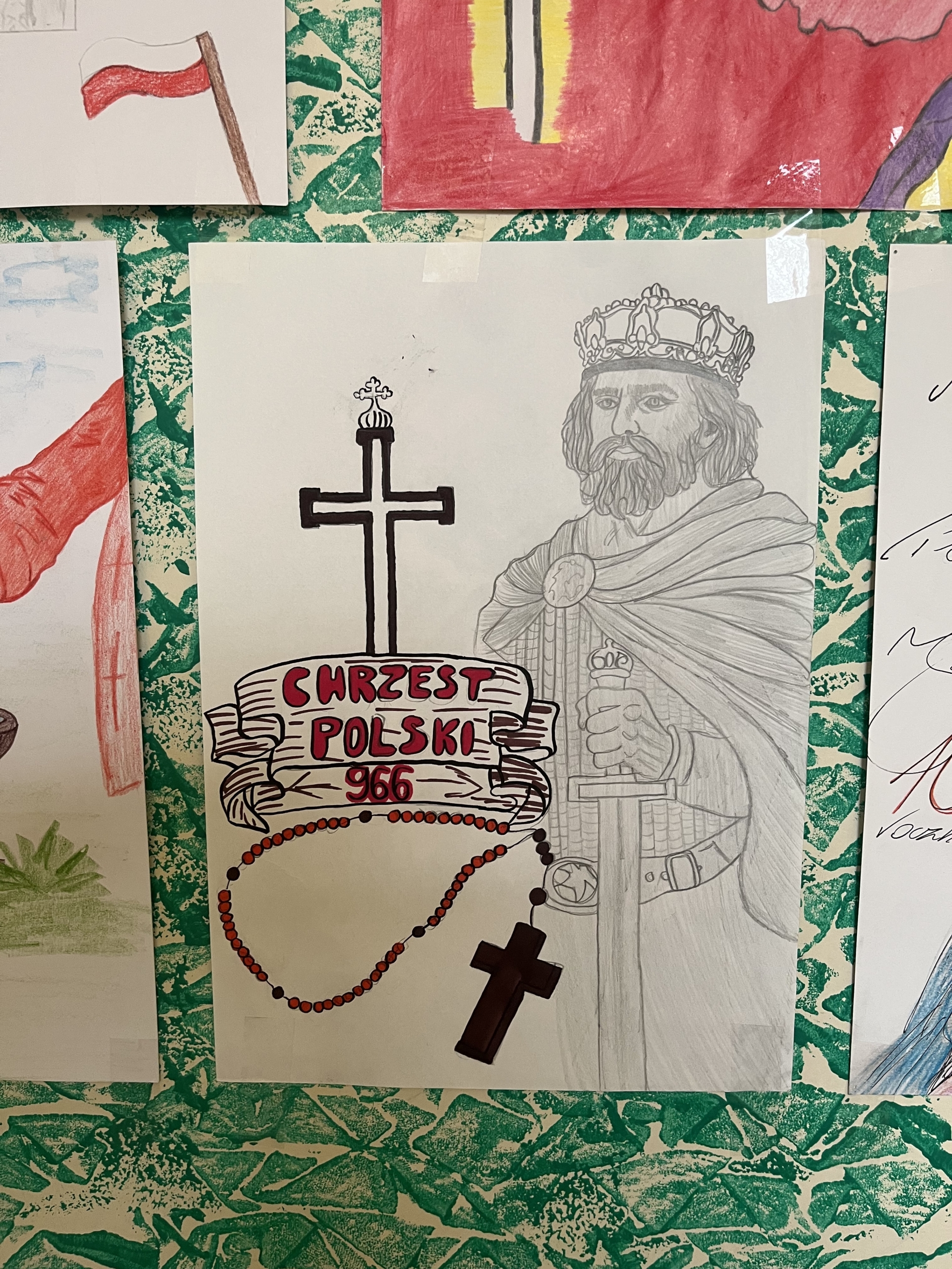 W naszej szkole uroczyście upamiętniono 1060. Rocznicę Chrztu Polski – wydarzenia o ogromnym znaczeniu dla historii i tożsamości naszego kraju. Z tej okazji zorganizowano szereg działań, które zaangażowały uczniów i nauczycieli. Jednym z głównych elementów obchodów był konkurs plastyczny, w którym uczniowie przedstawiali własne interpretacje chrztu Polski oraz jego znaczenie dla państwa i narodu. Powstałe prace odznaczały się dużą kreatywnością i różnorodnością form. Równolegle odbył się konkurs literacki, zachęcający młodzież do refleksji nad historią i jej wpływem na współczesność. Ważnym elementem obchodów była także prezentacja multimedialna, która przybliżyła społeczności szkolnej okoliczności chrztu Polski, jego przebieg oraz konsekwencje dla rozwoju państwa. O wyjątkowa atmosferę zadbała biblioteka szkolna, która przygotowała tematyczny wystrój szkoły. Na korytarzach pojawiły się gazetki, plakaty oraz materiały edukacyjne związane z tym wydarzeniem.