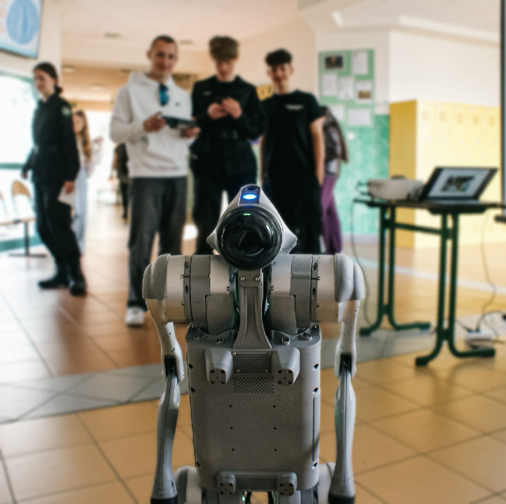 🤖 Po korytarzach krążyła też niecodzienna atrakcja – szkolny robo-pies sterowany przez Filipa! Przyciągał spojrzenia, wzbudzał ciekawość i był jednym z tych elementów, które pokazywały, że u nas nauka idzie w parze z nowoczesnością 😄